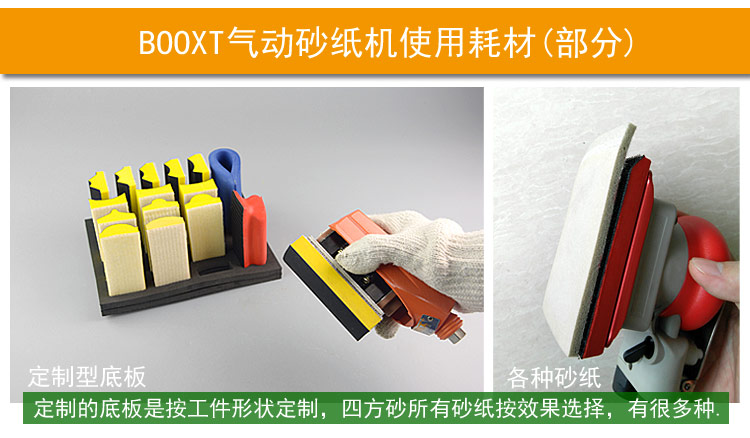 • 產(chǎn)品參數(shù): 底盤尺寸:100*180mm;空載轉速:7500rpm;偏擺直徑:5mm;工具長度:270mm;工具高度:123mm;重量:1.5kg;耗氣量:0.53立方米/分鐘;機器使用時多加氣動油保養(yǎng);需搭配集塵桶或中央集塵設備使用