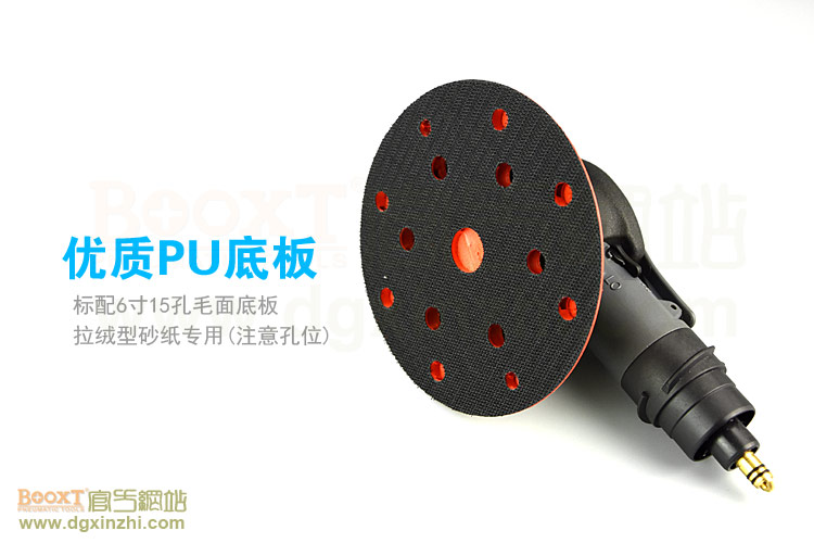 --粗磨偏心度幅度為9.5mm,扭力大,切削能力更大,適合重力打磨。工件一般幅面較大,要求打磨速度快,粗糙的打磨表面,如:玻璃鋼,UV,原子灰等材質(zhì)比較硬的工件,所用砂紙規(guī)格120#以下;