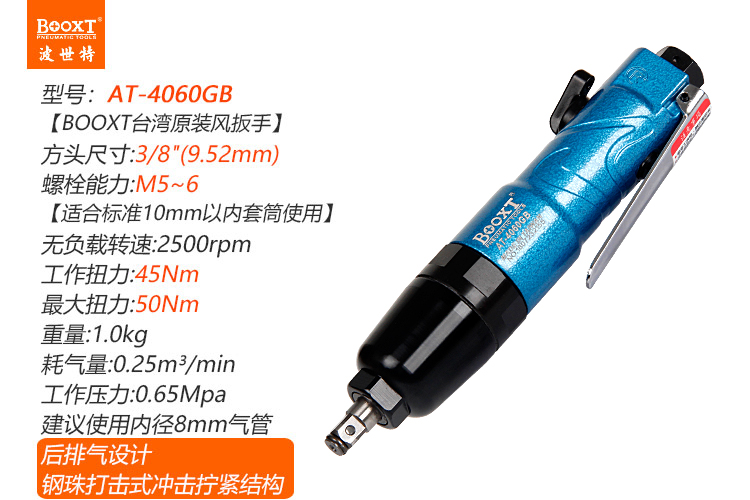 東莞市強勁五金工具有限公司提供臺灣BOOXT波世特品牌氣動工具,直柄氣動扳手AT-4060GB廠家直銷,首件享特價。咨詢熱線:4008301980