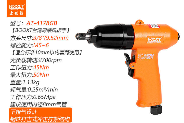 東莞市強(qiáng)勁五金工具有限公司提供臺(tái)灣BOOXT波世特品牌氣動(dòng)工具,鋼珠打擊式氣動(dòng)扳手AT-4178GB廠家直銷,首件享特價(jià)。咨詢熱線:4008301980