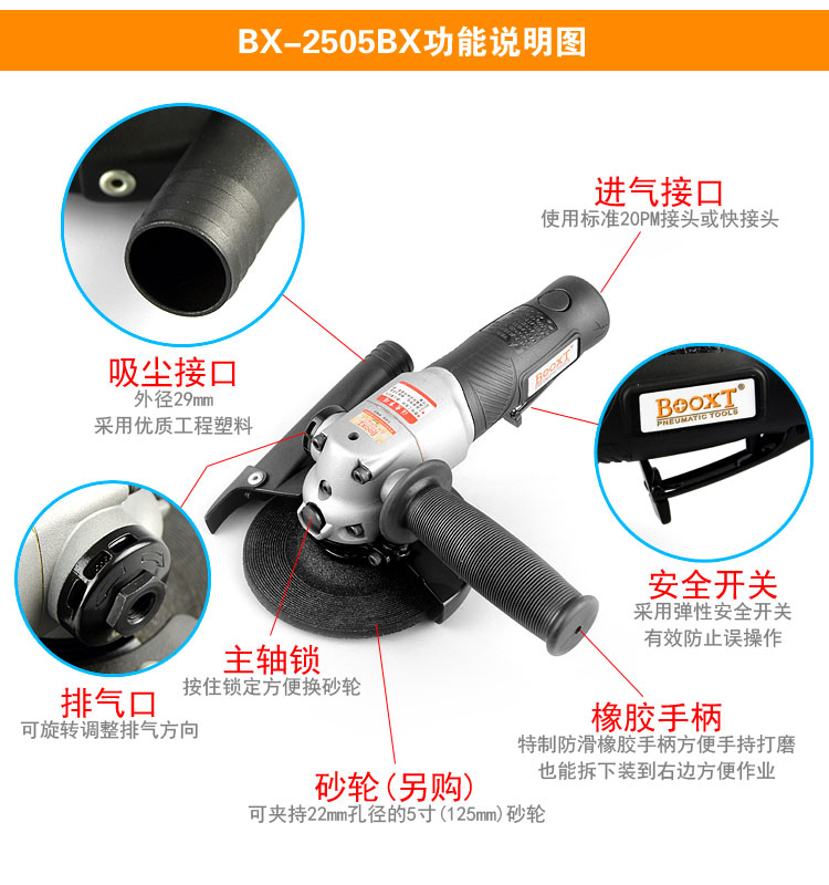 • 產(chǎn)品型號(hào): 吸塵氣動(dòng)角磨機(jī)BX-2505BX