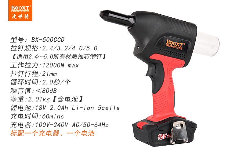 東莞市強勁五金工具有限公司提供臺灣BOOXT波世特品牌五金工具,鋰電拉釘槍BX-500CCD廠家直銷,首件享特價。咨詢熱線:4008301980