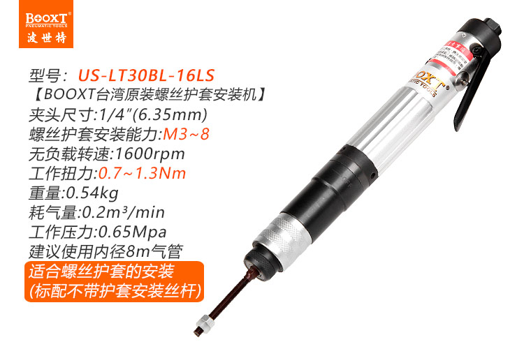 東莞市強勁五金工具有限公司提供臺灣BOOXT波世特品牌氣動工具,氣動螺絲護(hù)套安裝機US-LT30BL-16LS廠家直銷,首件享特價。咨詢熱線:4008301980
