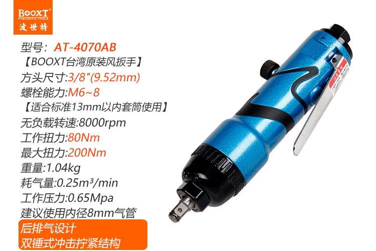 東莞市強(qiáng)勁五金工具有限公司提供臺灣BOOXT波世特品牌氣動工具,直柄氣動扳手AT-4070AB廠家直銷,首件享特價。咨詢熱線:4008301980