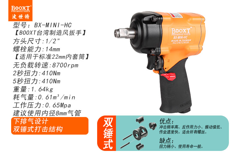 東莞市強(qiáng)勁五金工具有限公司提供臺灣BOOXT波世特品牌氣動工具,輕型氣動扳手BX-MINI-HC廠家直銷,首件享特價。咨詢熱線:4008301980