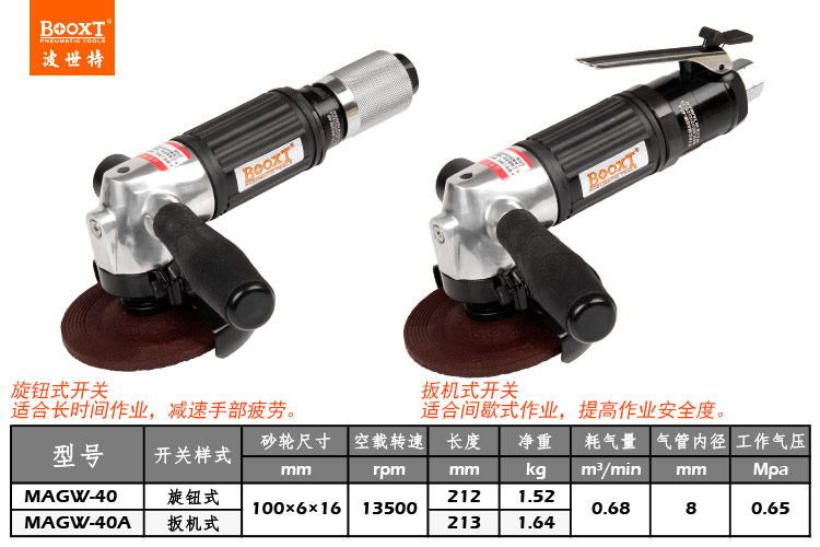 東莞市強(qiáng)勁五金工具有限公司提供臺(tái)灣BOOXT波世特品牌氣動(dòng)工具,氣動(dòng)角磨機(jī)MAGW-40廠家直銷,首件享特價(jià)。咨詢熱線:4008301980