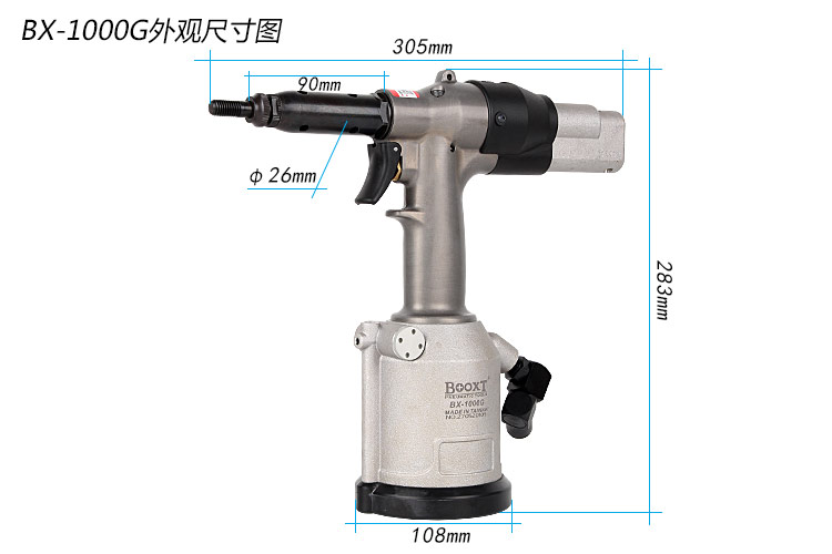 東莞市強勁五金工具有限公司提供BOOXT波世特品牌氣動工具,臺灣氣動鉚螺母槍BX-1000G廠家直銷,首件享特價。咨詢熱線:4008301980