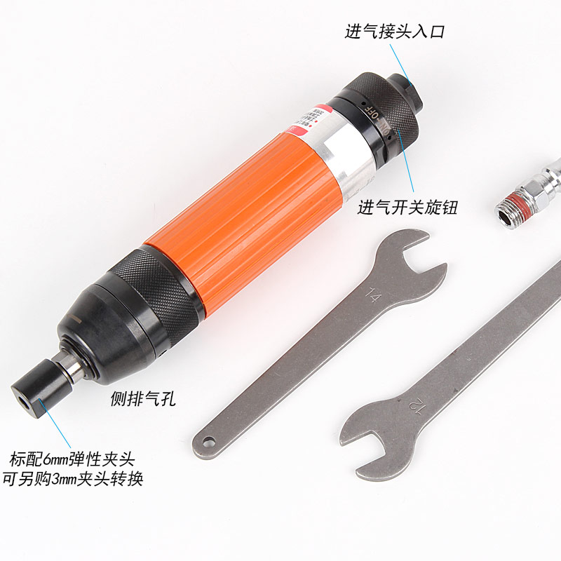 • 產(chǎn)品參數(shù): 夾頭能力:M3,6 (標(biāo)配M6) 馬達(dá)功率:0.45HP 空載轉(zhuǎn)速:18000rpm 工具能力:砂輪磨頭M32,旋轉(zhuǎn)銼刀M22 耗 氣 量:0.45m3/min 全 長:214mm 重 量 : 0.88kg 【旋鈕開關(guān)/超高同心度】