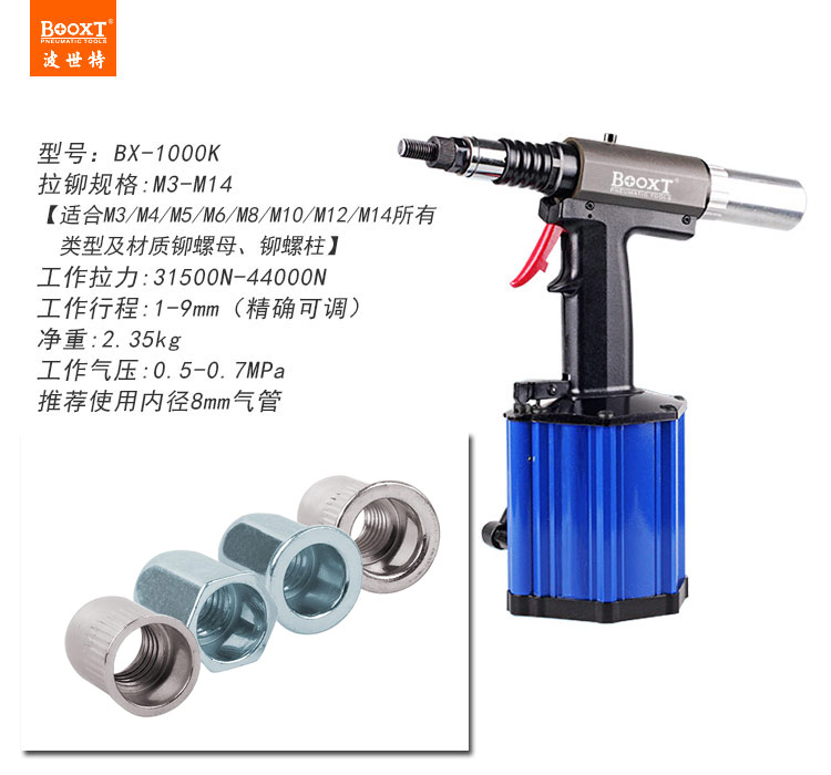 東莞市強(qiáng)勁五金工具有限公司提供BOOXT波世特品牌氣動(dòng)工具,M14氣動(dòng)拉鉚螺母槍BX-1000K廠家直銷,首件享特價(jià)。咨詢熱線:4008301980