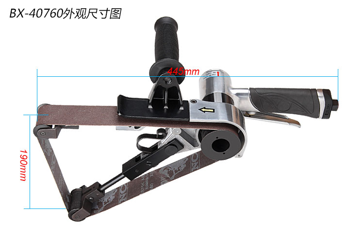 • 產(chǎn)品參數(shù): 砂帶規(guī)格:40X760mm(環(huán)形) 空載轉(zhuǎn)速:3300RPM 耗 氣 量:4CFM/min 機(jī)器長(zhǎng)度:445mm 凈機(jī)重量:2.5kg
