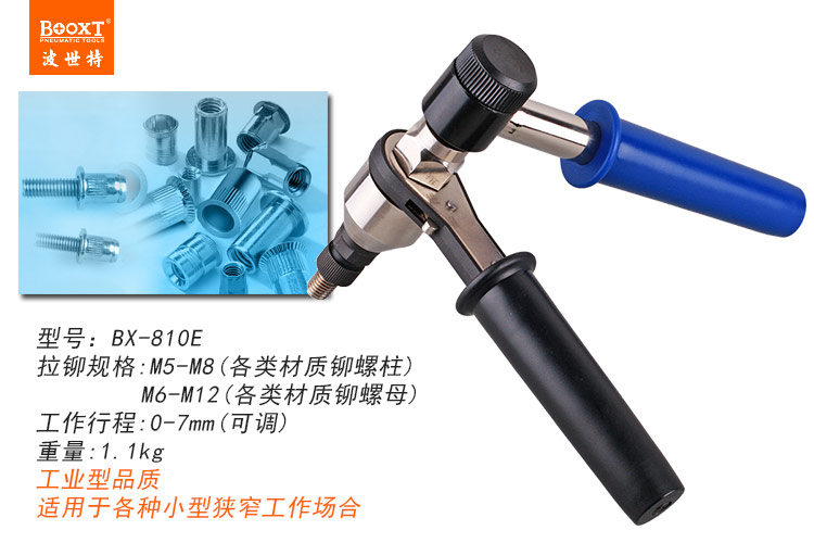 東莞市強(qiáng)勁五金工具有限公司提供臺灣BOOXT波世特品牌氣動工具,手動棘輪拉鉚螺母槍BX-810E廠家直銷,首件享特價。咨詢熱線:4008301980