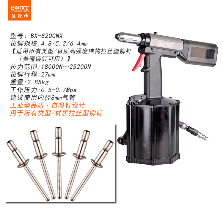 東莞市強(qiáng)勁五金工具有限公司提供臺灣BOOXT波世特品牌氣動工具,自吸式氣動拉絲鉚釘槍BX-820CNX廠家直銷,首件享特價(jià)。咨詢熱線:4008301980