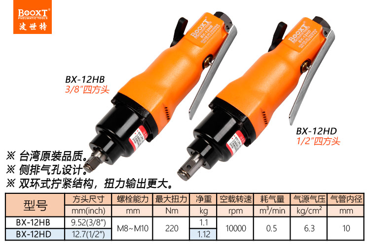 東莞市強勁五金工具有限公司提供臺灣BOOXT波世特品牌氣動工具,直式氣動扳手BX-12HD廠家直銷,首件享特價。咨詢熱線:4008301980