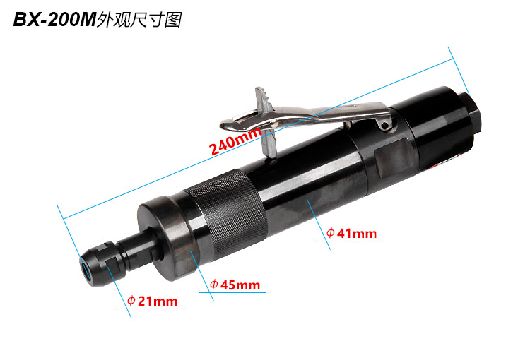 • 產(chǎn)品參數(shù): 夾頭尺寸:標配6mm;選配m3,m8 空載轉速:20000rpm; 工具長度:240mm; 工具重量:1.28kg; 馬達功率:1.0HP; 后排氣; 耗氣量:0.48m3/min; 噪音值:88db(A) 使用工作氣壓:0.65Mpa; 推薦使用內徑8mm氣管; 平時使用應多加氣動油保養(yǎng).【工業(yè)型/歐系】