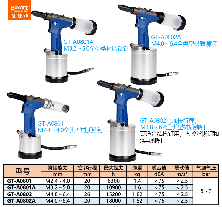 東莞市強勁五金工具有限公司提供臺灣BOOXT波世特品牌氣動工具,氣動拉釘槍GT-A0801廠家直銷,首件享特價。咨詢熱線:4008301980