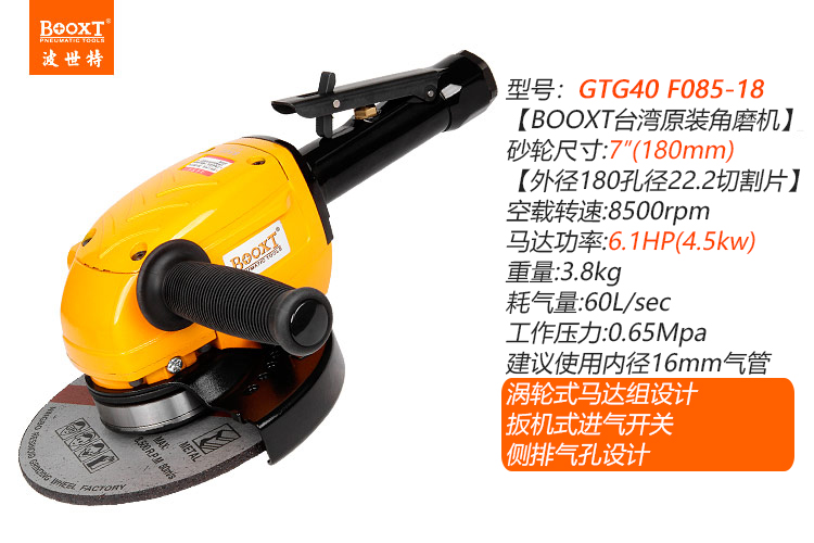 東莞市強(qiáng)勁五金工具有限公司提供臺灣BOOXT波世特品牌氣動工具,渦輪式氣動角磨機(jī)GTG40 F085-18廠家直銷,首件享特價。咨詢熱線:4008301980