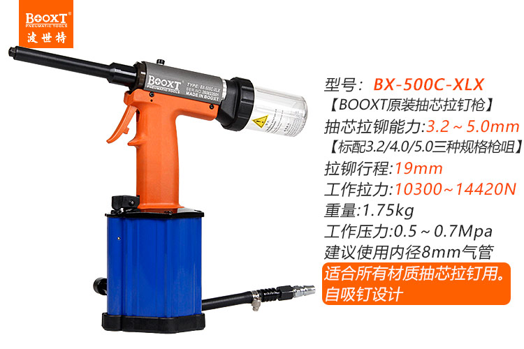 東莞市強勁五金工具有限公司提供臺灣BOOXT波世特品牌氣動工具,加長氣動鉚釘槍BX-500C-XL廠家直銷,首件享特價。咨詢熱線:4008301980