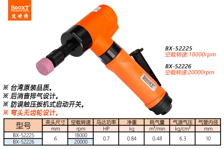 東莞市強勁五金工具有限公司提供臺灣BOOXT波世特品牌氣動工具,彎頭氣動刻磨機BX-52225廠家直銷,首件享特價。咨詢熱線:4008301980