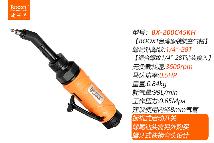 東莞市強(qiáng)勁五金工具有限公司提供臺灣BOOXT波世特品牌氣動工具,偏角螺紋柄氣鉆BX-200C45KH廠家直銷,首件享特價。咨詢熱線:4008301980