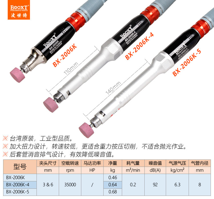 東莞市強(qiáng)勁五金工具有限公司提供臺(tái)灣BOOXT波世特品牌氣動(dòng)工具,大扭力風(fēng)磨筆BX-2006K廠家直銷(xiāo),首件享特價(jià)。咨詢(xún)熱線:4008301980