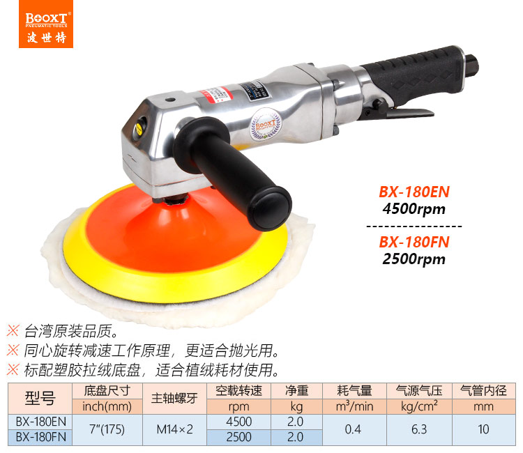東莞強(qiáng)勁五金工具有限公司提供臺(tái)灣BOOXT波世特氣動(dòng)工具,風(fēng)動(dòng)拋光打蠟機(jī)BX-180EN廠家直銷,首件享特價(jià)。咨詢熱線:4008301980