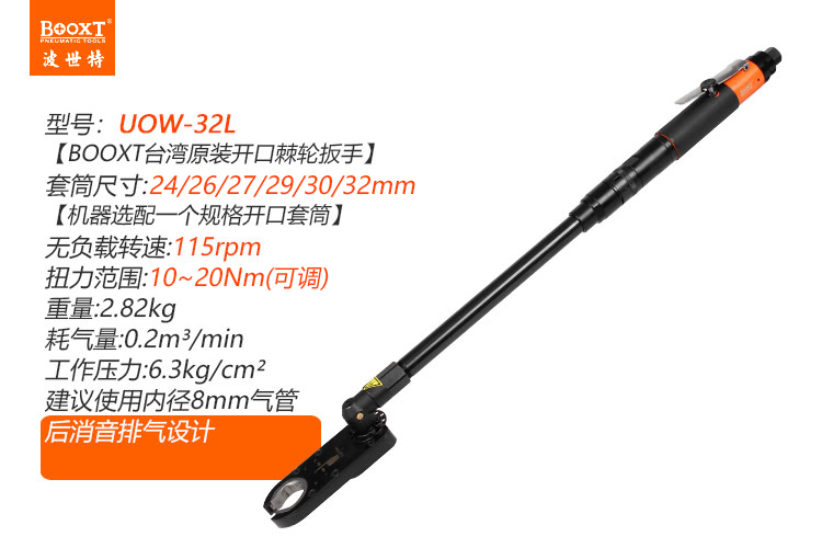 東莞市強勁五金工具有限公司提供臺灣BOOXT波世特品牌氣動工具,加長型氣動開口扳手UOW-32L廠家直銷,首件享特價。咨詢熱線:4008301980