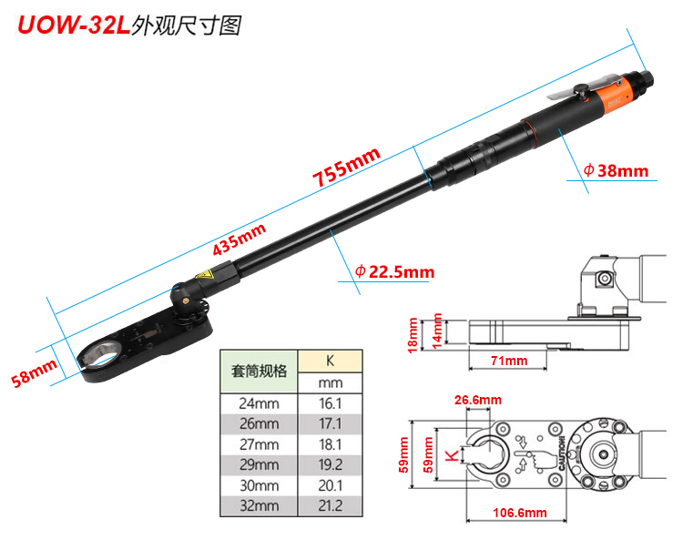 加長型氣動開口扳手UOW-32L