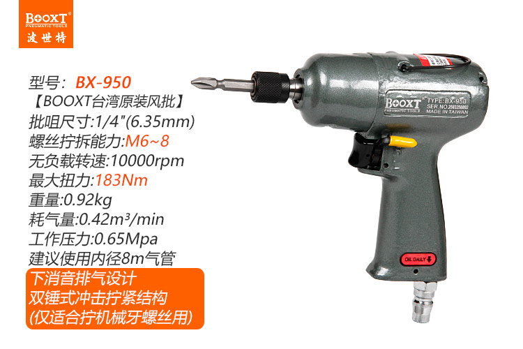 東莞市強勁五金工具有限公司提供臺灣BOOXT波世特品牌氣動工具,槍型氣動螺絲刀BX-950廠家直銷,首件享特價。咨詢熱線:4008301980
