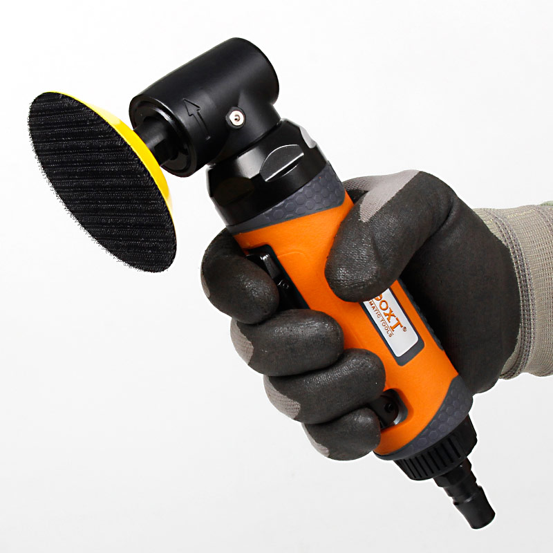1.帶偏心式,裝砂紙打磨出來(lái)的效果是“霧”狀,帶細(xì)小亂絲的小紋路,適合后工藝需要做噴砂、烤漆,增加附著力。(標(biāo)配一般為3mm偏擺,可選配1.5mm,0.7mm偏擺度)