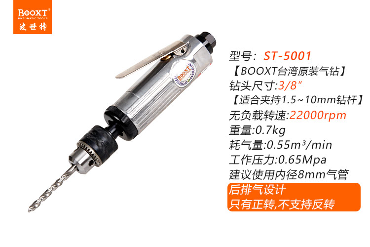 東莞市強(qiáng)勁五金工具有限公司提供臺(tái)灣BOOXT波世特品牌氣動(dòng)工具,直式氣鉆BX-5001廠家直銷(xiāo),首件享特價(jià)。咨詢熱線:4008301980